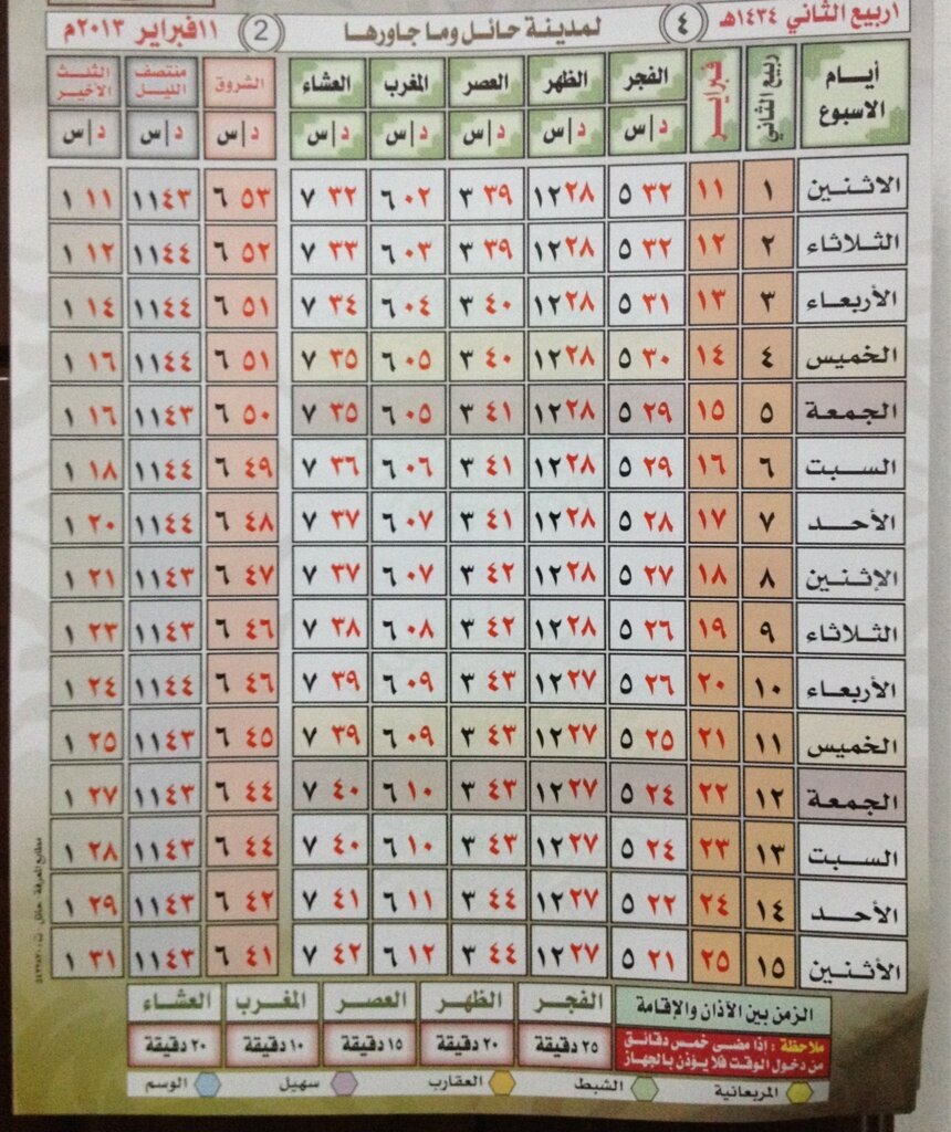 مواقيت الصلاة فى حائل السعودية اليوم 2tareekh المصطبة