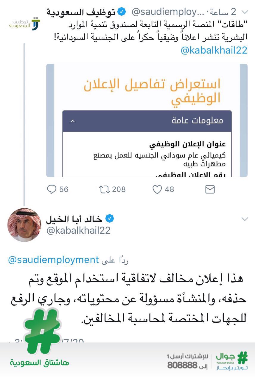 هاشتاق السعودية On Twitter العمل والتنمية تتفاعل مع إعلان وظيفي مخالف لجنسية محددة وتحذف الإعلان وتتوعد بمحاسبة المنشأة