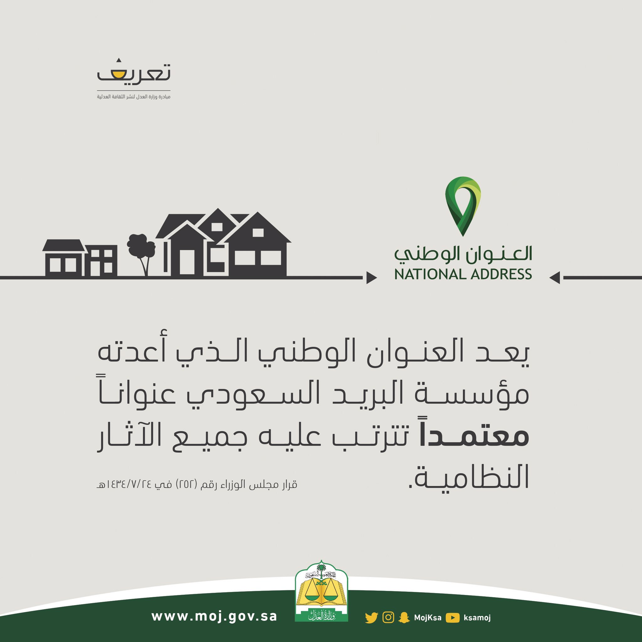 وزارة العدل On Twitter يعد العنوان الوطني الذي أعدته مؤسسة البريد السعودي عنوانا معتمدا تترتب عليه جميع الآثار النظامية مبادرة تعريف